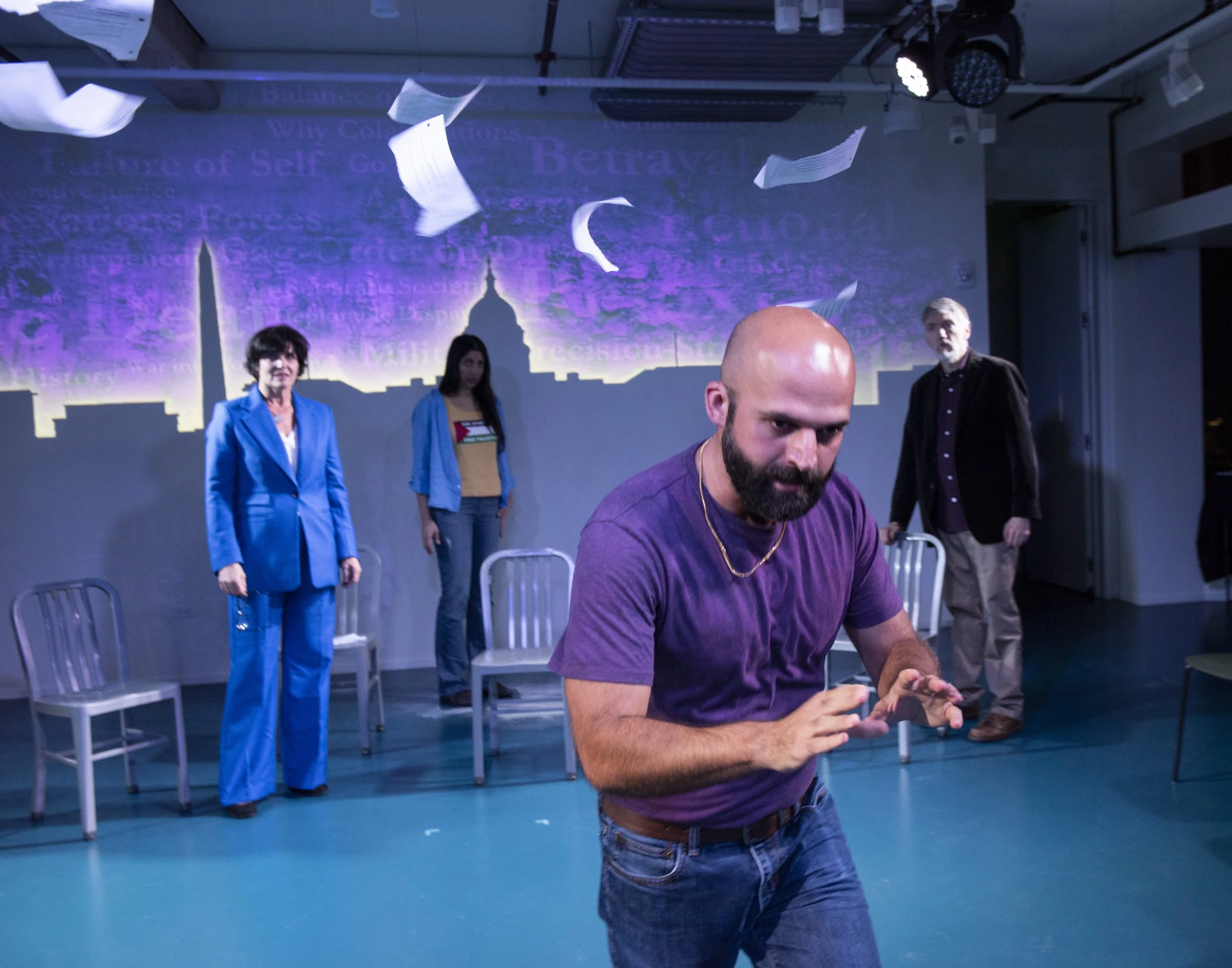 “Director John Vreeke shrewdly meets the challenge of how to stage this text fest with a polished production that is both provocative and dynamic... The cast is superb. Ilasiea Gray as Virginia B. Lawrence, Karl Kippola as AD, Lisa Hodsoll as Miri Rekev, Anat Cogan Eilat Herzog, and Hassan Nazari-Robati as Samad Hussein keep the playing area in diagrammatic motion as they fill the script’s fragmentary, staccato exchanges with sense and long speeches with passion. Their impressively heightened acting style both intensifies and illuminates the knotty drama...